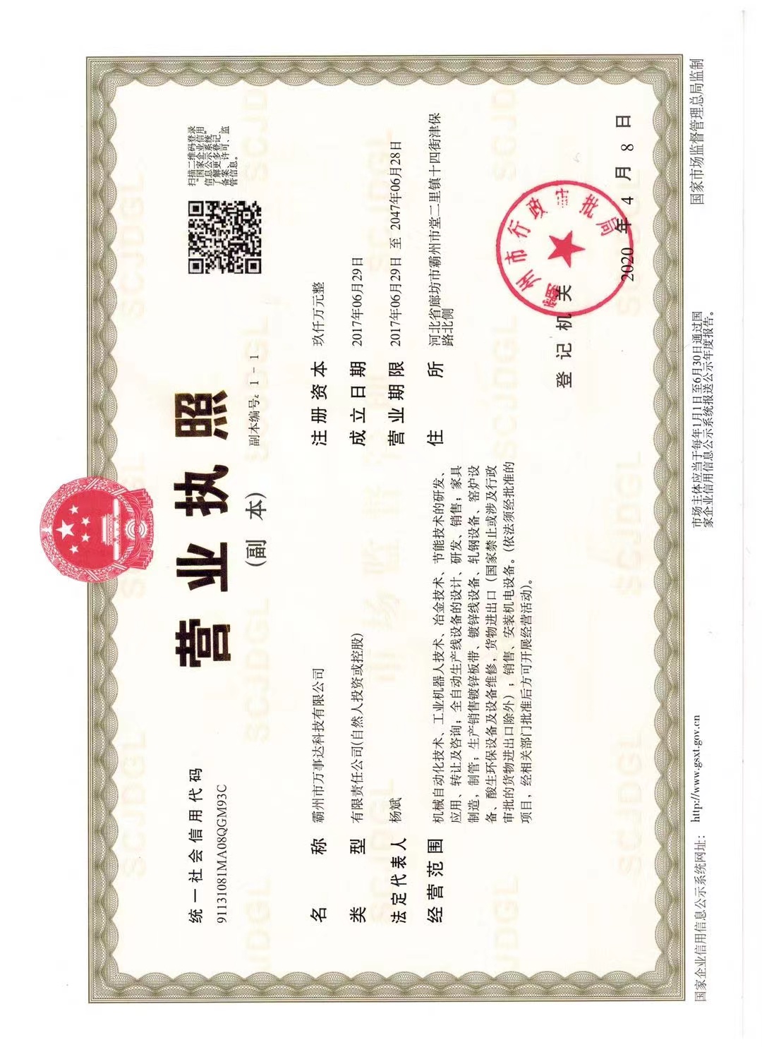 廠名: 霸州市萬(wàn)事達(dá)科技有限公司